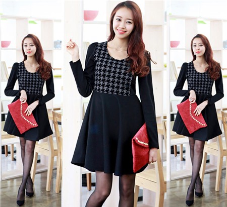 Mùa đông năm nay họa tiết kẻ khá được yêu thích, bạn có thể mix vải trơn màu ở thân trên và họa tiết kẻ ở phần chân váy.