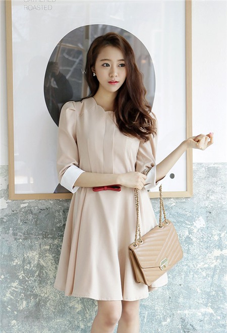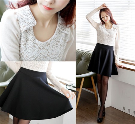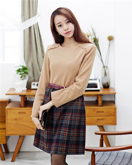 Các bạn gái muốn trẻ trung hơn cũng như kéo dài thêm chiều cao nên chọn váy có độ ngắn trên đầu gối, ngày đông bạn kết hợp thêm đôi tất mỏng, áo khoác ngoài giữ ấm.